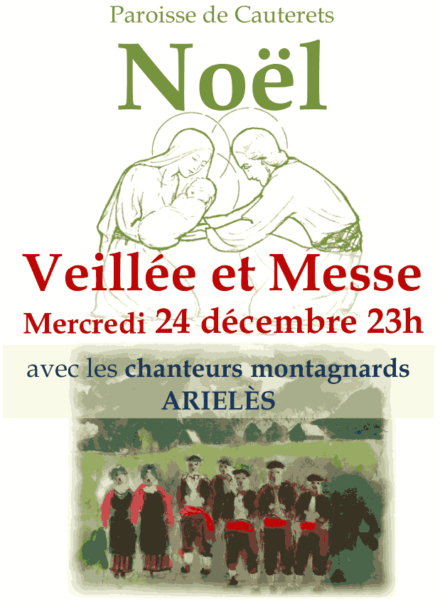 Voici la fin de l’Avent, bientôt Noël et ses vacances. Nous serons nombreux à Cauterets. Venez profitez de votre présence pour rencontrer l’enfant Jésus à la crèche, avec Marie et Joseph. Venez célébrez Noël avec nous!